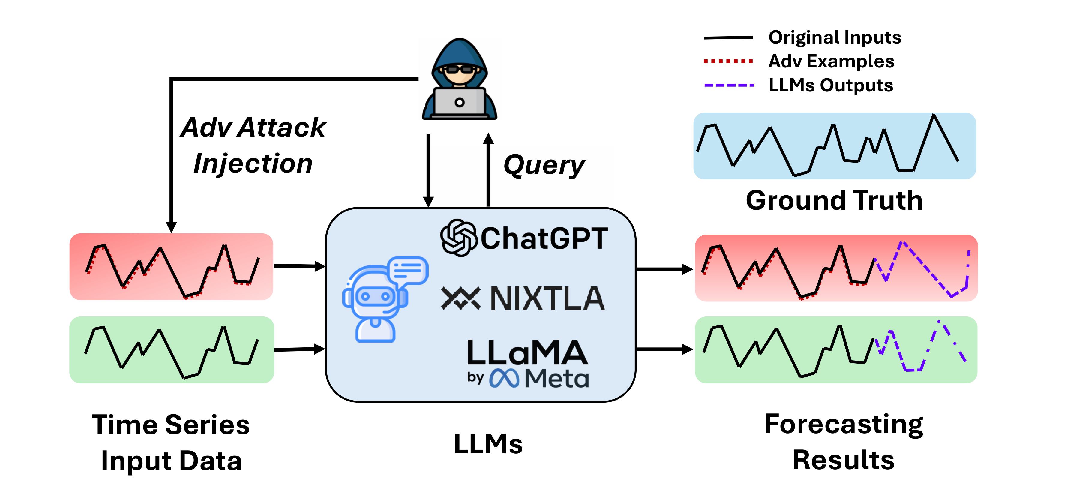 - Adversarial Vulnerabilities in Large Language Models for Time Series Forecasting AISTATS 2025.